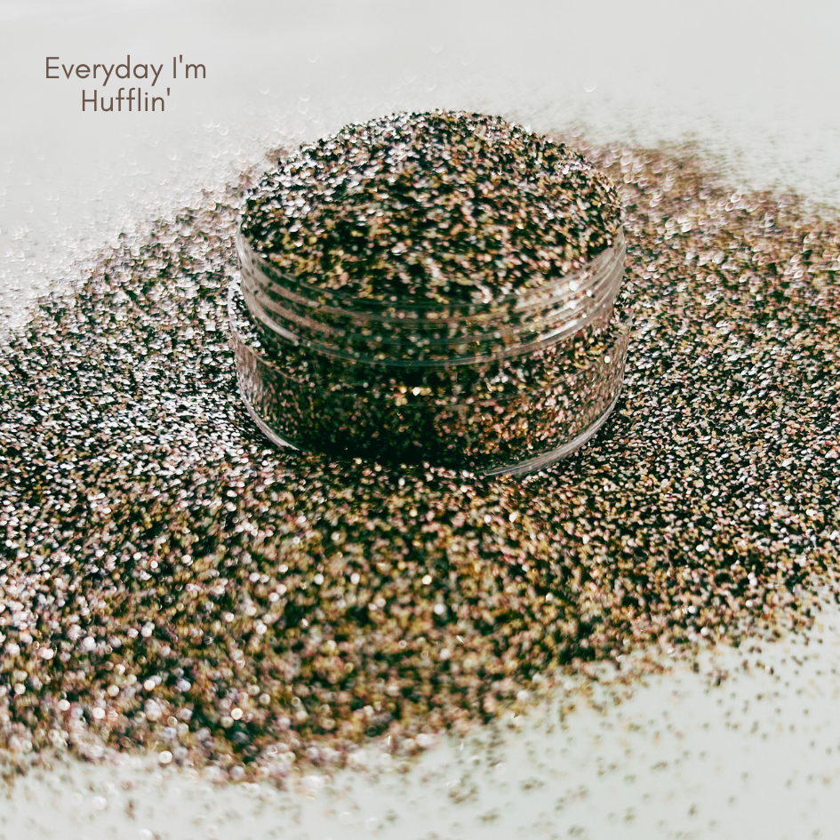 Embrace the subtle sparkle of silver that reflects the unwavering loyalty, the golden glint that captures the Hufflepuff essence, and the depth of brown that symbolizes the nurturing nature. And let's not forget the dash of black – a nod to the Badger's resilience and strength. Just like Hufflepuffs themselves, this glitter is an eclectic blend that values every hue and creates a harmonious whole.