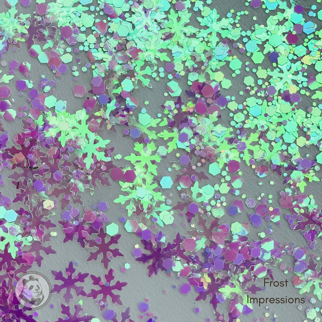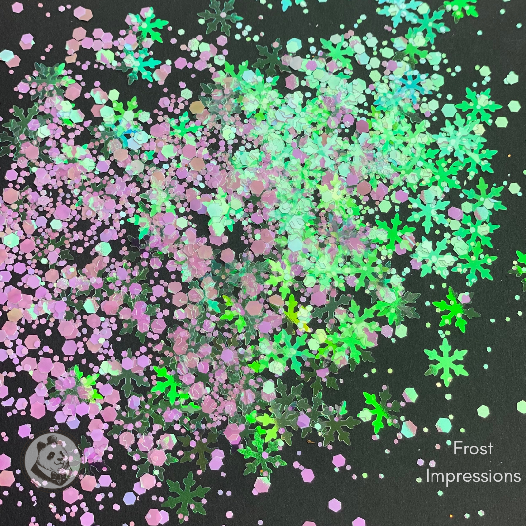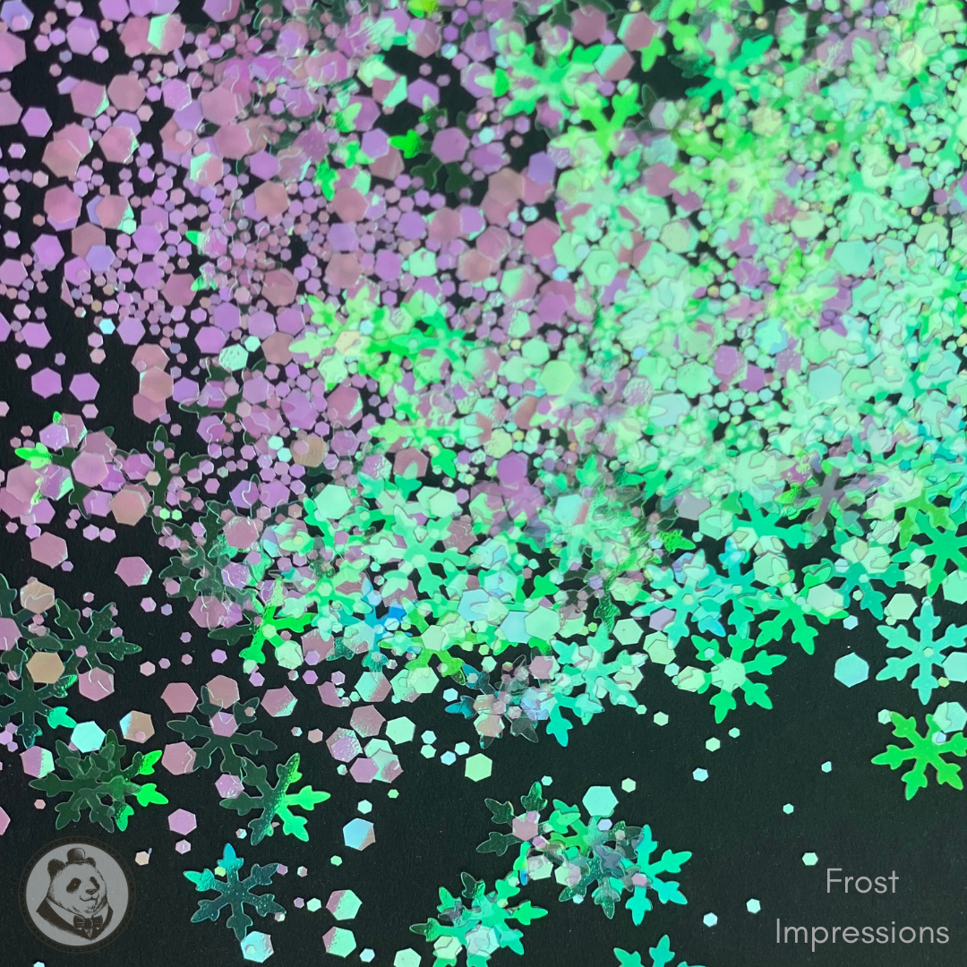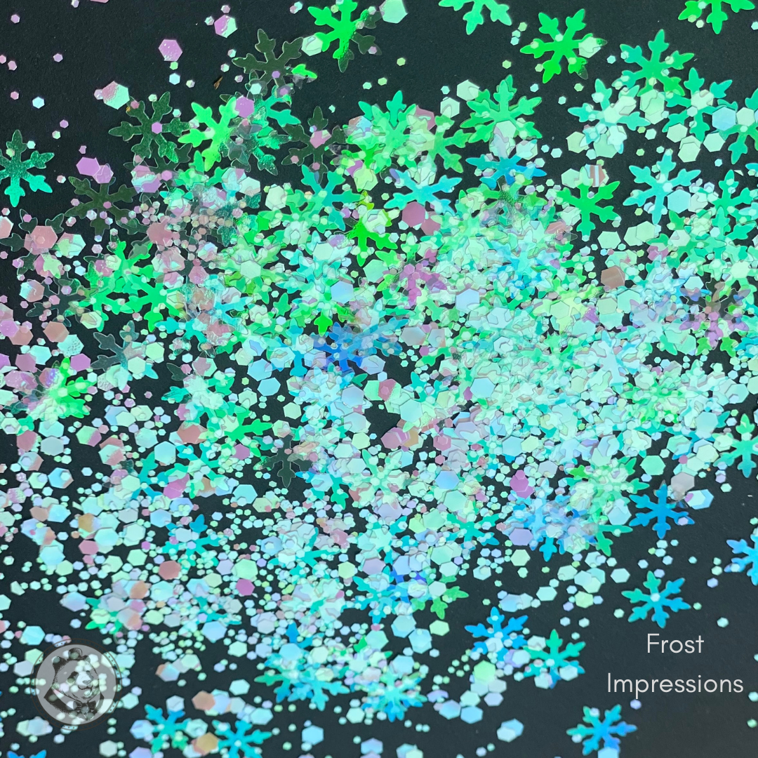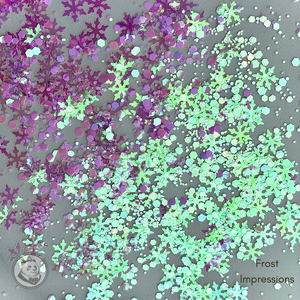This pearl opal is an alluring glitter, with different lighting and base colors helping the colors dance between whites, pinks, greens, and blues. The snowflakes are complimented with chunky glitter, making it hard to think of anything other than "Winter Wonderland" while you handle it. One look and you'll realize that first impressions are important, but Frost Impressions are memorable.