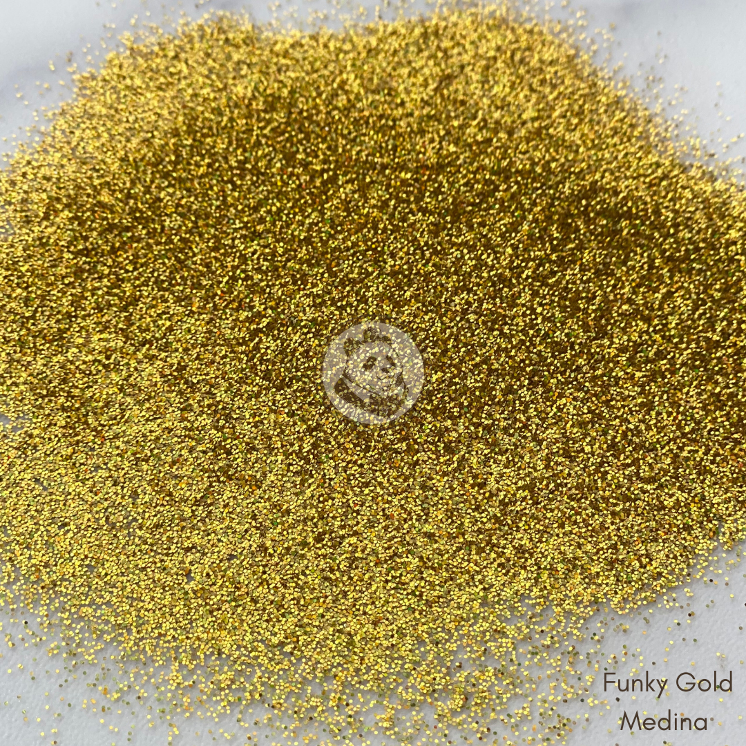 Was this a misheard lyric for anyone else? The song tells the tale of a modern day love potion. This gold glitter takes its inspiration from the "love" song, shimmering like the brassy gold of a saxophone, stealing attention with a smooth, warm gold. This quality glitter packs a holographic punch though, bringing an intense, upbeat shine and brilliance that takes your project up a few notches! When they ask why your crafts are so fly, you can tell them it's with a little help from Funky Gold Medina.