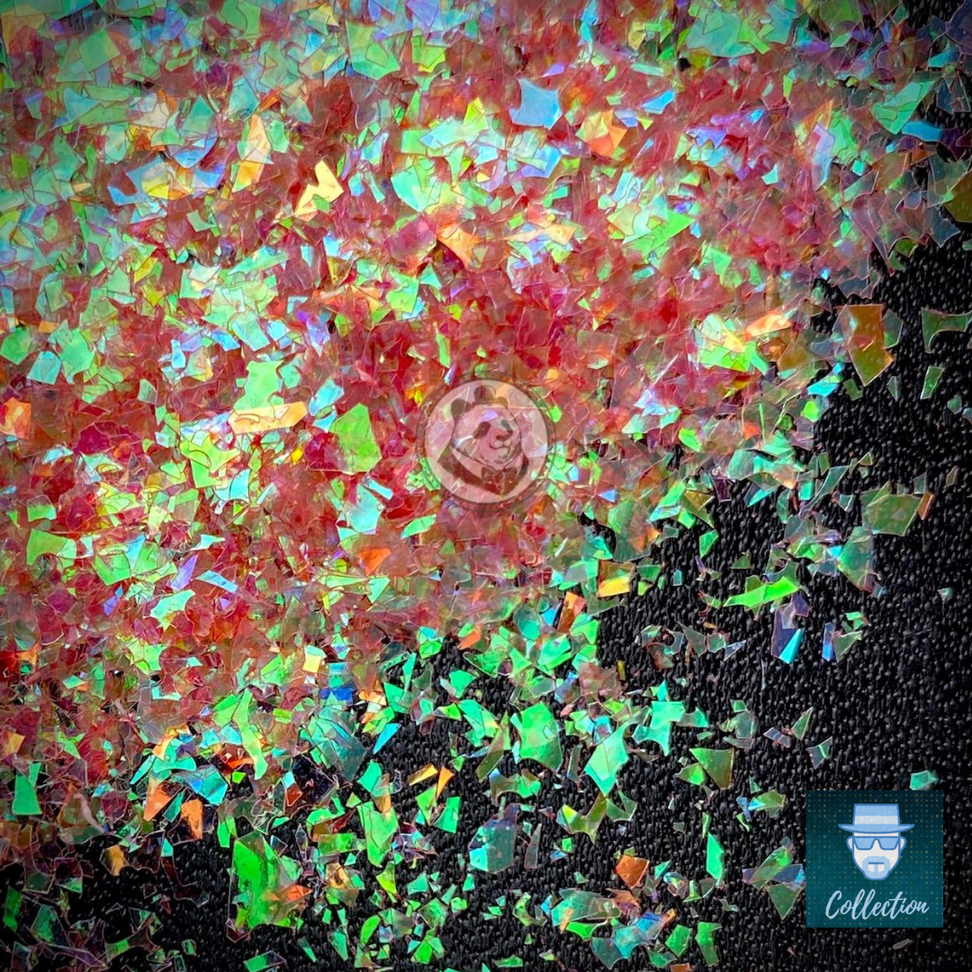 Every hero (or villian?) has a trusty sidekick. Who better for that part than Jesse Pinkman? The nice guy with a knack for bad, this chunky shard glitter is a surprising iridescent pink/red with tints of orange, green, blue and more! This fiery opal glitter shifts colors with each angle.
