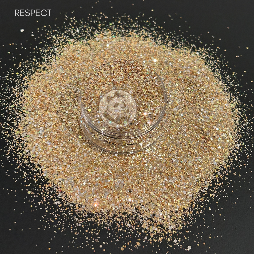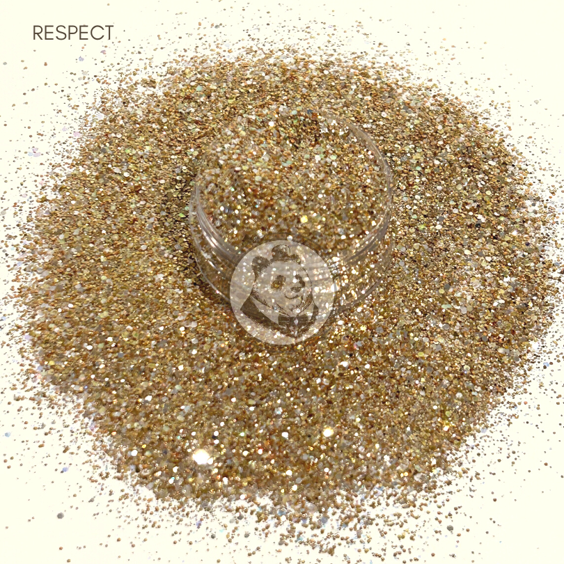 The base of this glitter is a deep, warm gold, reminiscent of the powerful voice and presence of the legendary queen of soul herself, Aretha Franklin. The specks of iridescent silver, like glittering drops of rain, shimmer and sparkle like diamonds, reflecting shades of pink, purple, or blue.