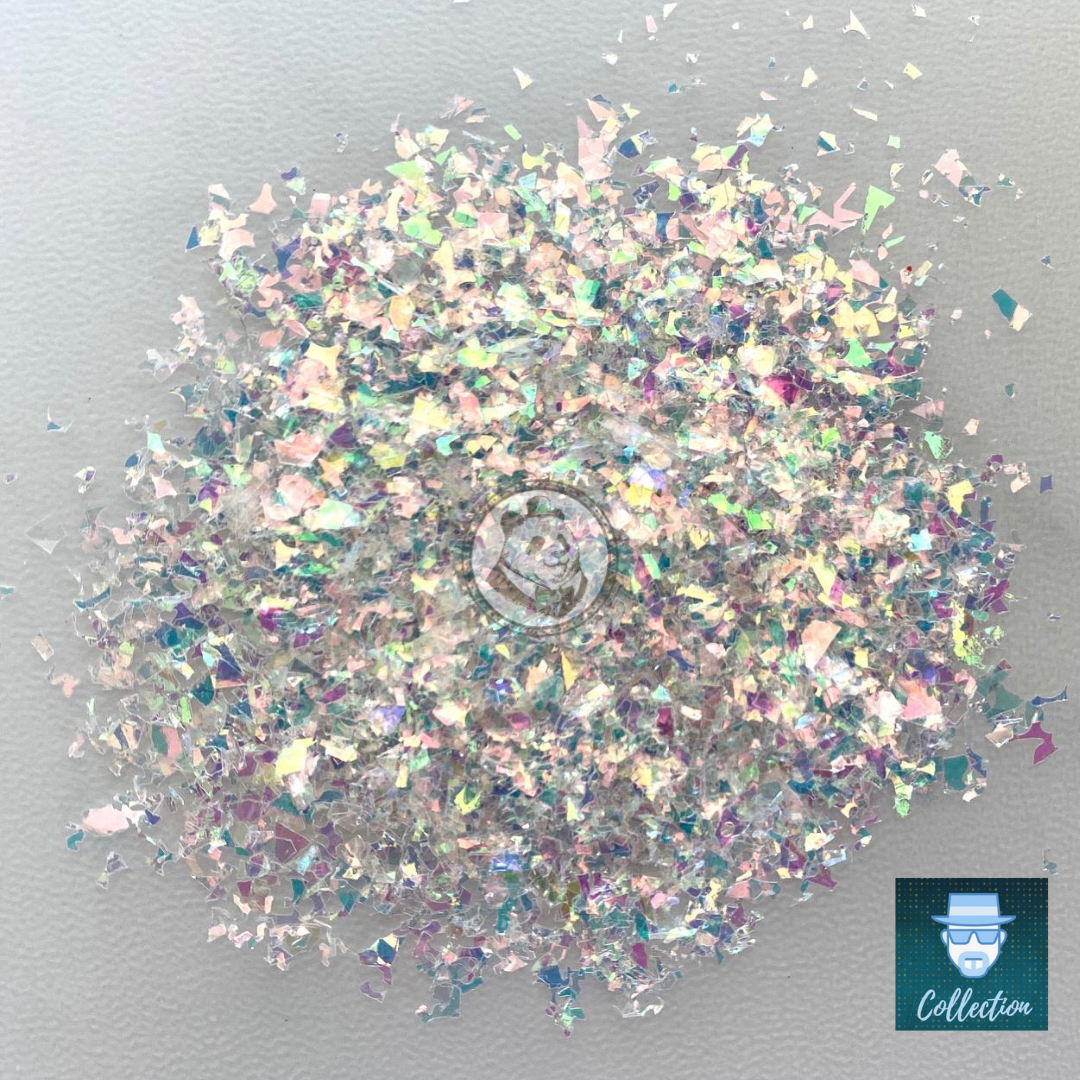 Like Skyler White, this glitter is more than meets the eye. A charming iridescent white with tints of pink, purple, gold, and more! This beautiful opal glitter shifts colors with each angle, morphing in front of your eyes, like Skyler.